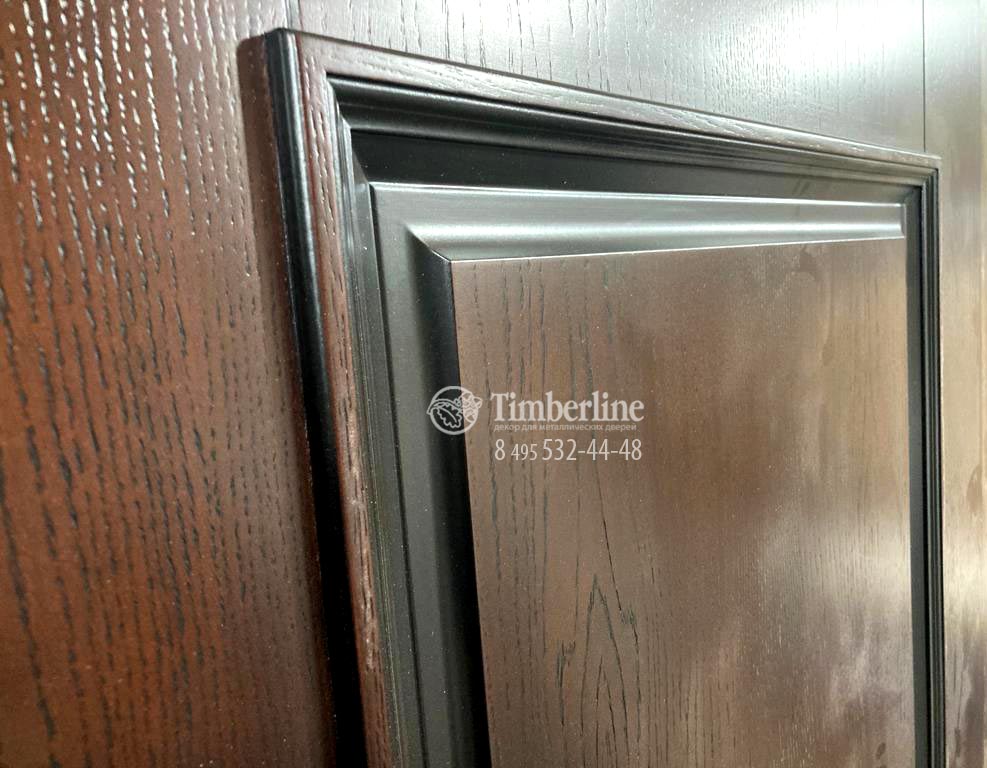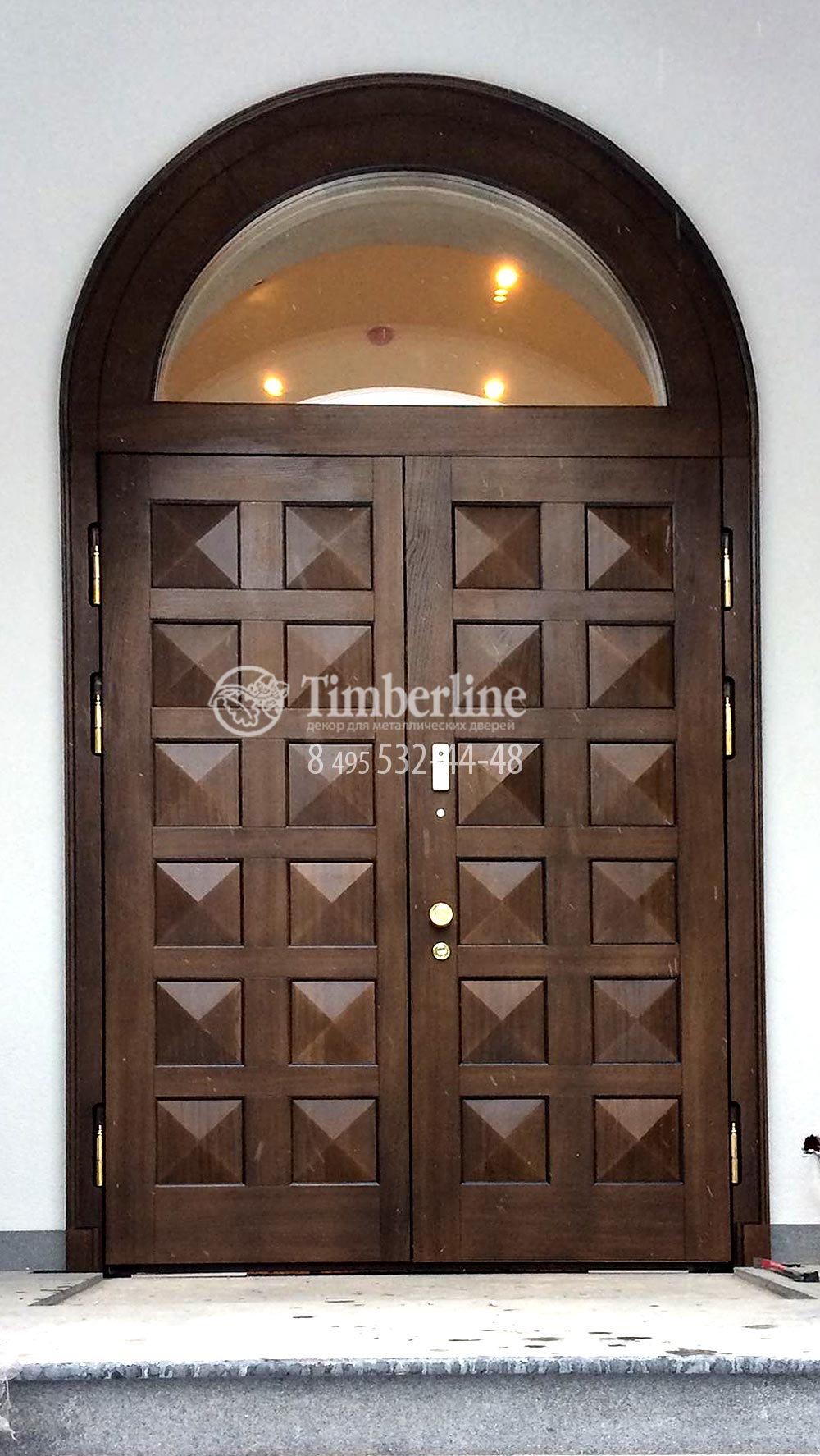 Классические деревянные двери изготавливается по той же технологии, поэтому металлическая дверь, инкрустированная филенчатой накладкой, визуально полностью соответствует классическому виду обычной дорогой входной двери.